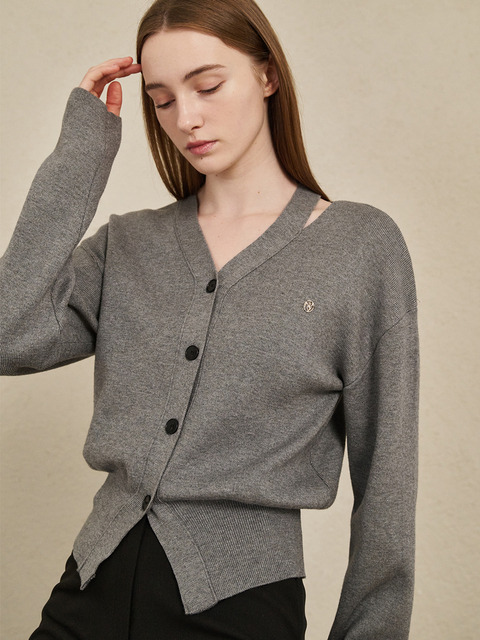 [누브] 브이넥 컷 아웃 가디건 -멜란지그레이