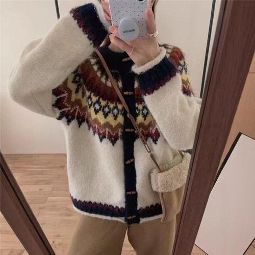 LnD 포근한 로슈 트위드 자켓 여성용 라운드넥 뽀글이 카디건 가디건 후리스