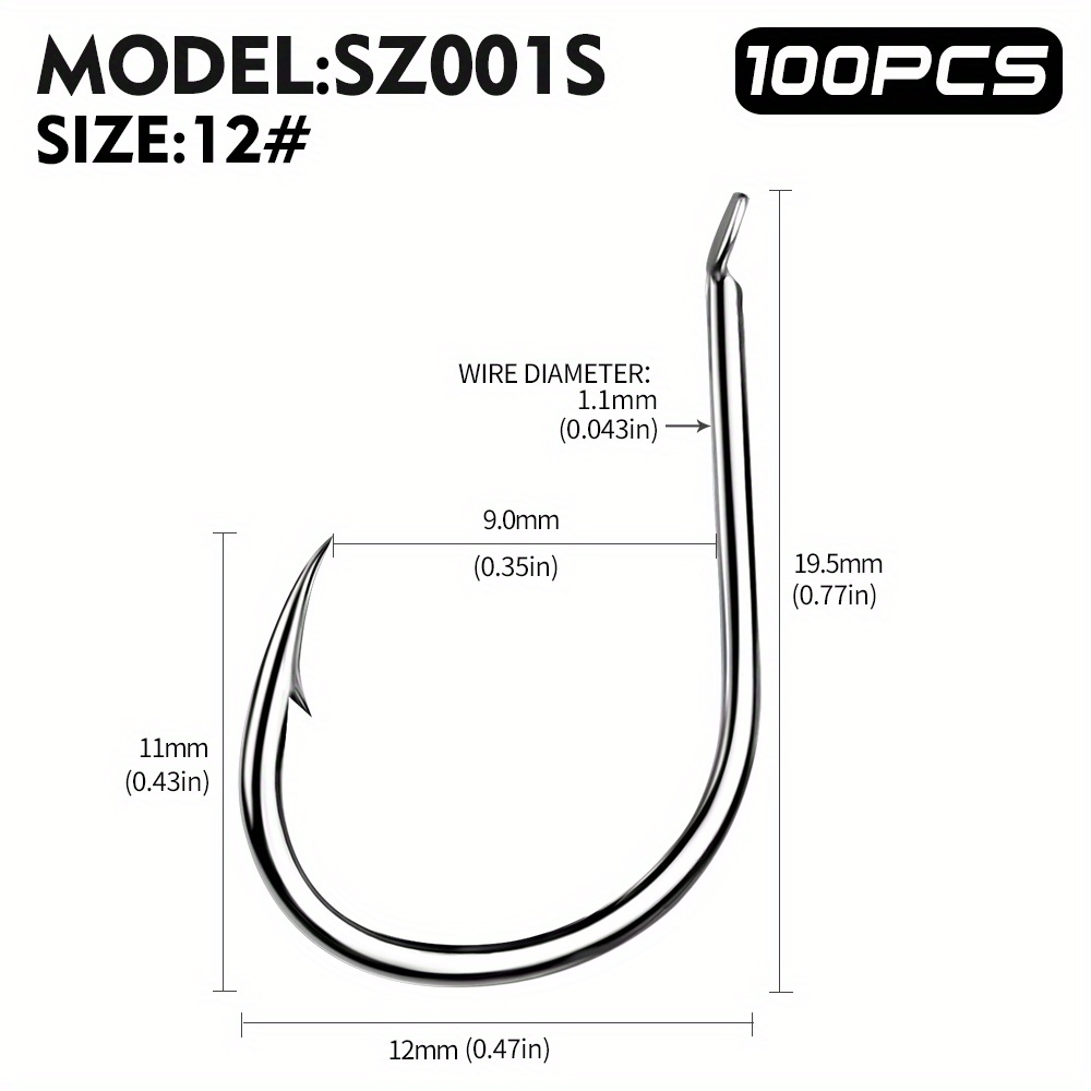 TEMU PROBEROS 100 스틸 낚시 바늘, 사이즈 10/0#-14/0#, 새로운 기계적 디자인, 바드 눈 특징, 변형 저항 및 강력한 관입 제공, 바닷물 및 민물 대형 게임 낚시 모두에 적합