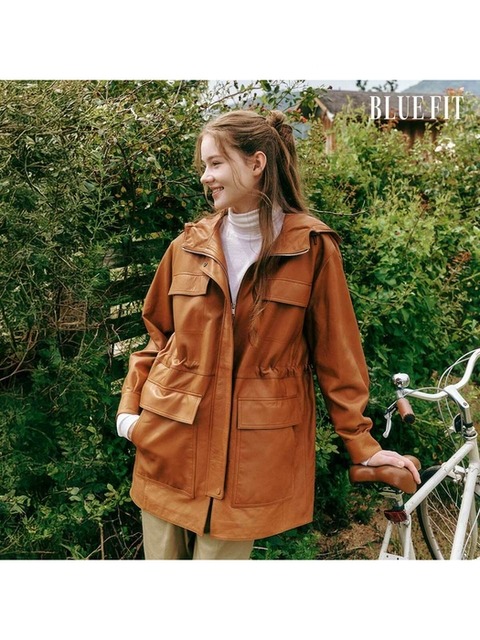 [블루핏] [25FW최신상] 블루핏X로보 이태리 베지터블 후드 램스킨 하프 코트