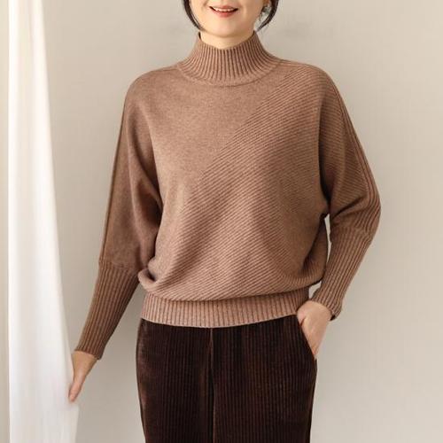 [옷자락]여성 터틀넥 비대칭 가오리핏 롱슬리브 니트