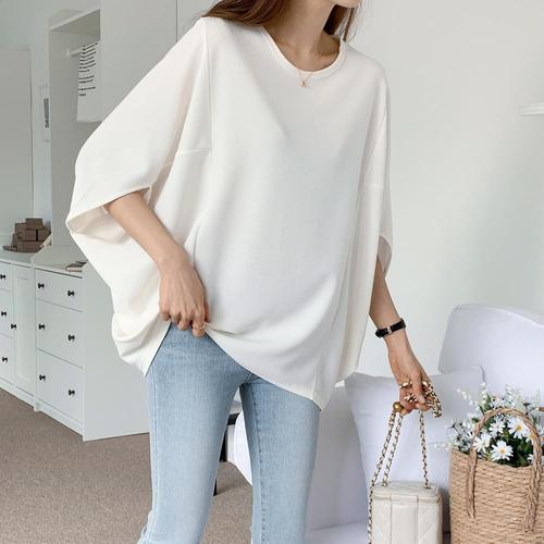 1+1 중년여성 라운드넥 5부소매 티셔츠 가오리핏 심플 편안한 반팔티 중년여성 풀오버