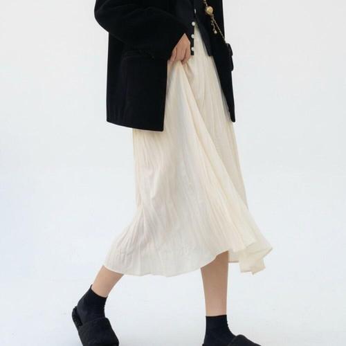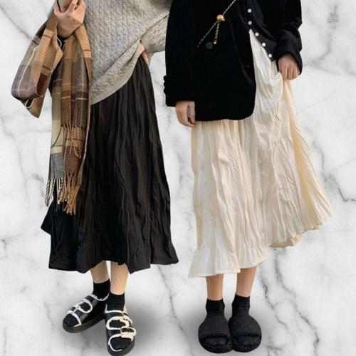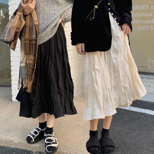 [옷자락]여성 가을겨울 일상용 핀턱 하이웨이스트 롱스커트