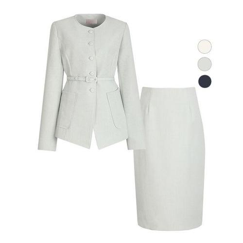[비비드시크릿가너]SET 여성위드미 벨티드 봄가을 정장 자켓+스커트 세트