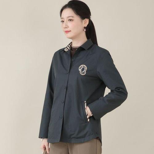 [애비뉴투지]엄마옷 안감있는 자수 체크 배색 스탠드 카라 단추 여성 봄 가을 셔츠형 하프 자켓 J10558