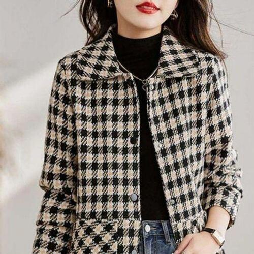 해피유통 여성 성인 봄 가을 울 니트 복고풍 짧은 자켓 하운드 투스 체크 패턴 lky