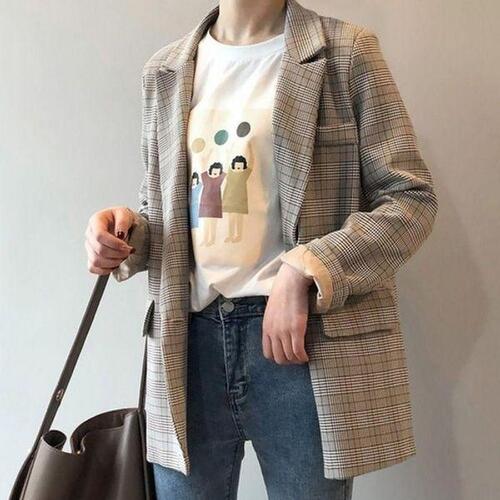 [끌레아]여성 체크 자켓 소매 롤업 캐주얼 정장 가을 간절기 레귤러핏