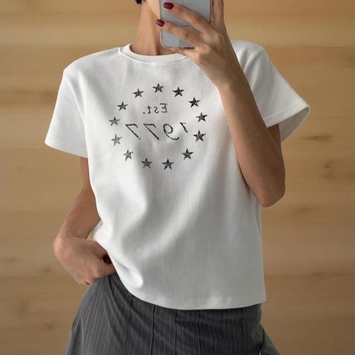 [셀러허브_여성트랜드패션]ONM 니트 반팔 여성 티셔츠 크롭 라운드넥 봄 가을