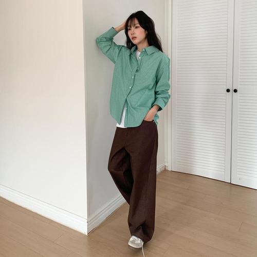 [옷자락]여성용 봄 여름 가을 오버사이즈 스트라이프 면 셔츠