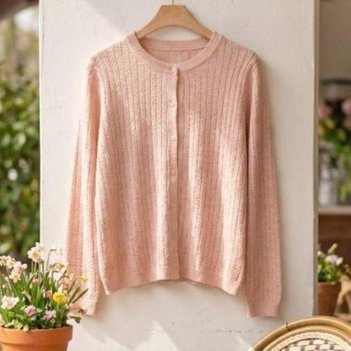 [신상오픈런]여성용 봄가을 일상 울혼합 라운드넥 긴팔 니트 가디건