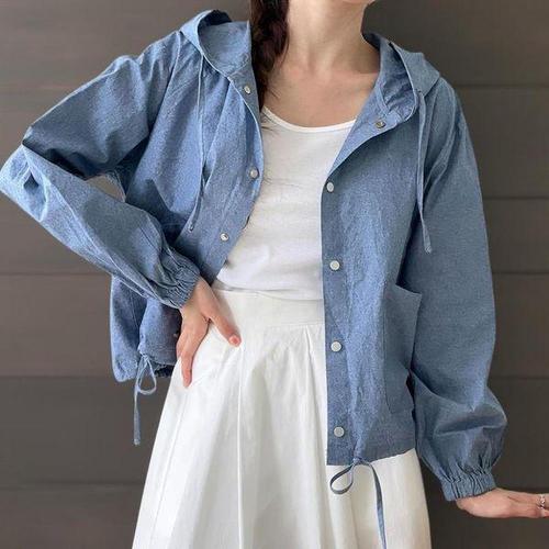 [신상오픈런]여성 가을 후드 점퍼 투포켓 코튼 셔츠