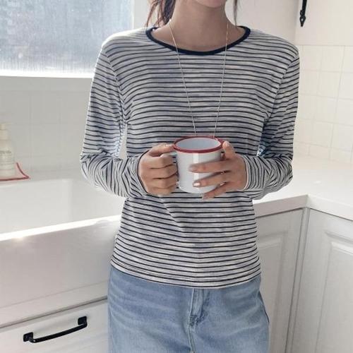 [신상오픈런]|KMTA333|여성용 봄 가을 기본 스트라이프 긴팔 티셔츠_24742788_597559