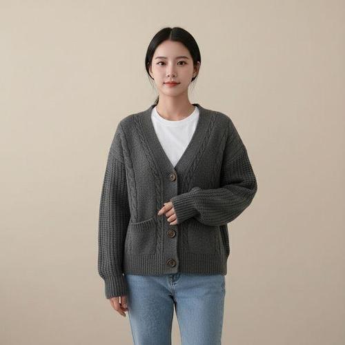 [골피아]여성 브이넥 니트 편안한 포켓 봄 가을 겨울 카디건 꽈베기 니트 캐주얼 외투 아우터