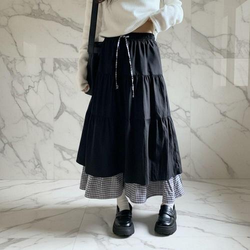[미라클세븐]여성용 봄가을 일상 밴딩 플레어 중간 길이 치마