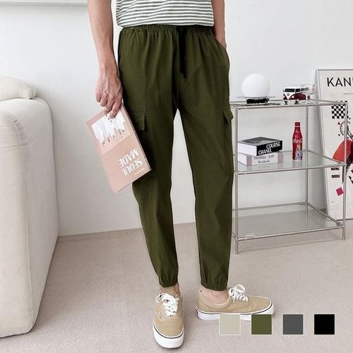 [셀러허브_여성트랜드패션]간절기 봄가을 20대남자바지 밴딩 남자캐주얼룩바지 남성밴딩 레귤러핏바지
