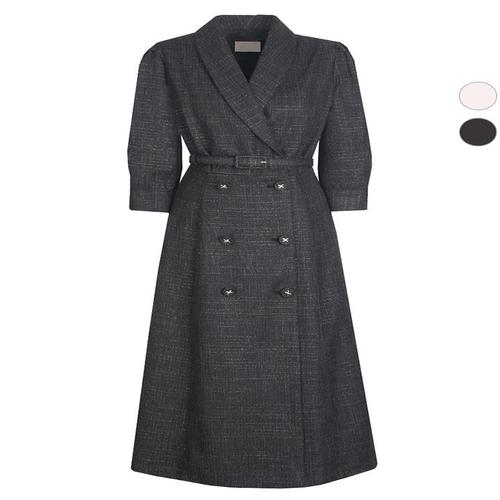 [비비드 시크릿가너]여성 레이디 트위드 봄가을 벨티드 원피스