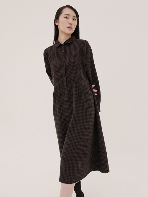 [치키타] 체크 더블코튼 원피스 브라운 250802BR