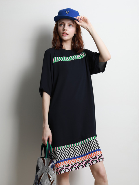 [비스아틀리에] 프린트 포인트 레글런 슬리브 원피스_NY