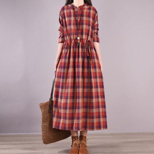 [오너클랜]인기상품 은창)체크 웨이스트 스트링 롱원피스 루즈핏 가을 봄 [WB91C66_250916]