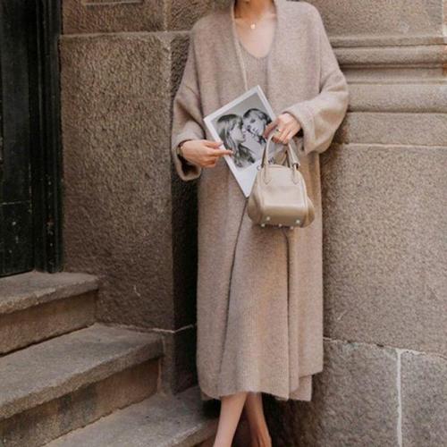 가을 겨울 여성 긴팔 데일리룩 롱 니트 원피스 도톰 보온 스웨터 원피스