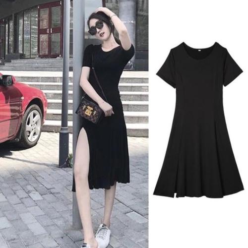 [오너클랜]인기상품 A라인 트임 원피스 라운드 블랙 반팔 이너 롱드레스 [WEA090B_250917]