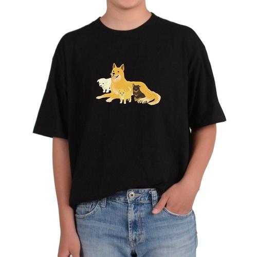반팔라운드 강아지가족 멍멍이 애완견 그림 전사이즈 WFIX4RY