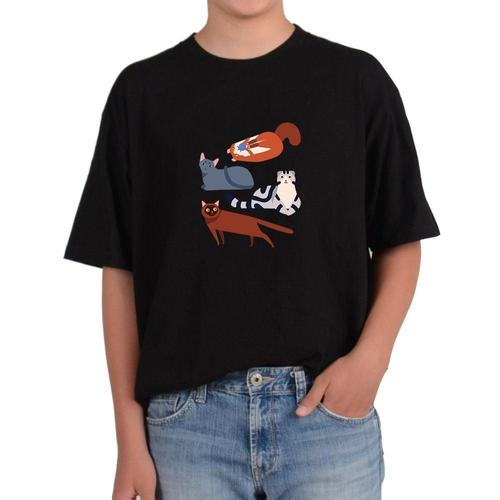 반팔라운드 고양이 가족 친구 길냥이 그림 전사이즈 WFIX55M