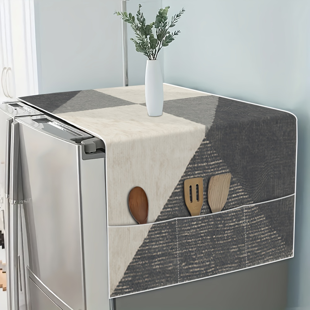 TEMU 옆면에 수납 공간이 있는 냉장고 커버 및 세탁기 커버, 가정용 냉장고 및 세탁기에 적합, 기하학적 패치워크 프린트 패턴이 특징인 실용적인 가정용 섬유 제품