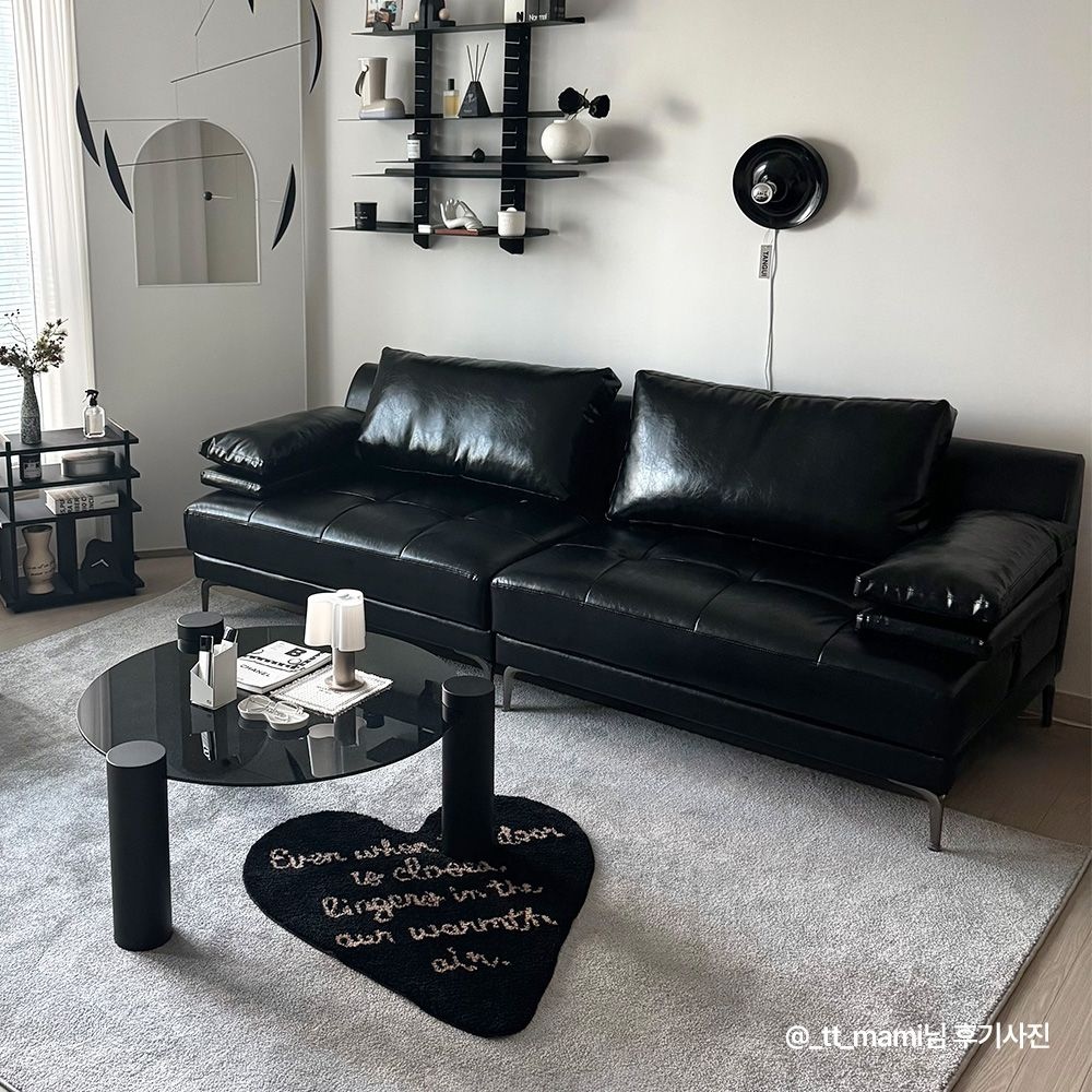 협탁증정/ 피트 3인 가죽 소파 (샌드베이지, 유광블랙)