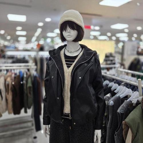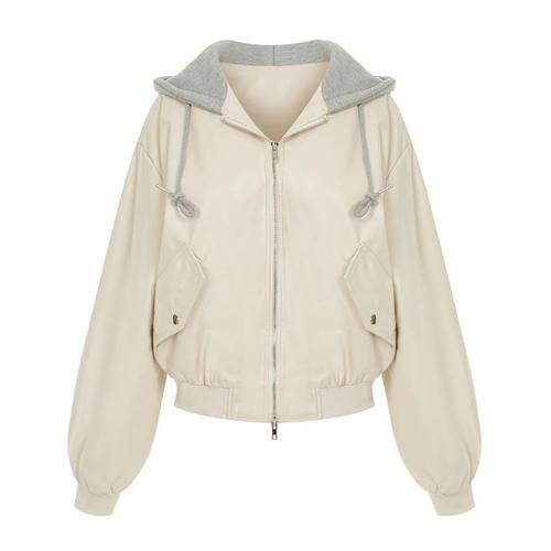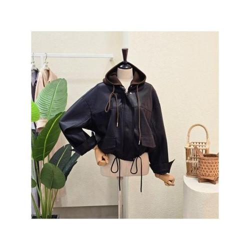 [트리아나]소고 세이브존01 니트 후드 루즈핏 인조 가죽 재킷 AK1GA14