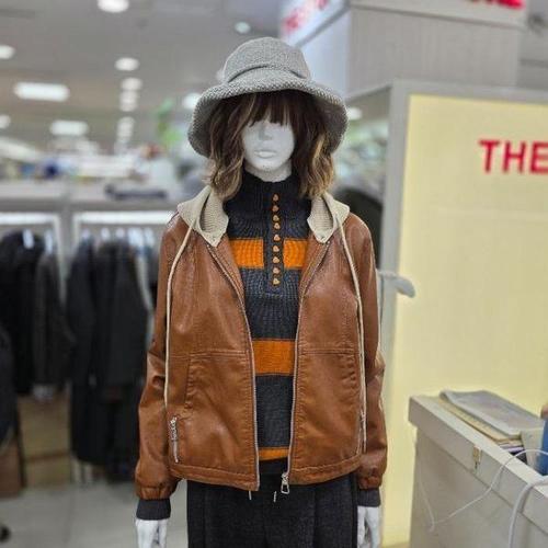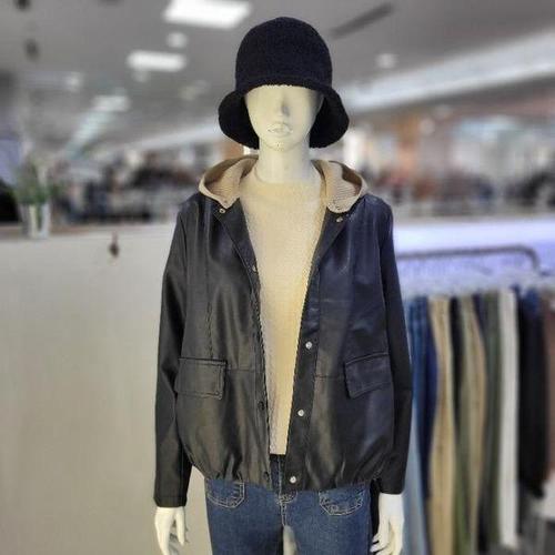 [트리아나]소고 세이브존01 니트 후드 인조 가죽 점퍼 AL3WA08(1)