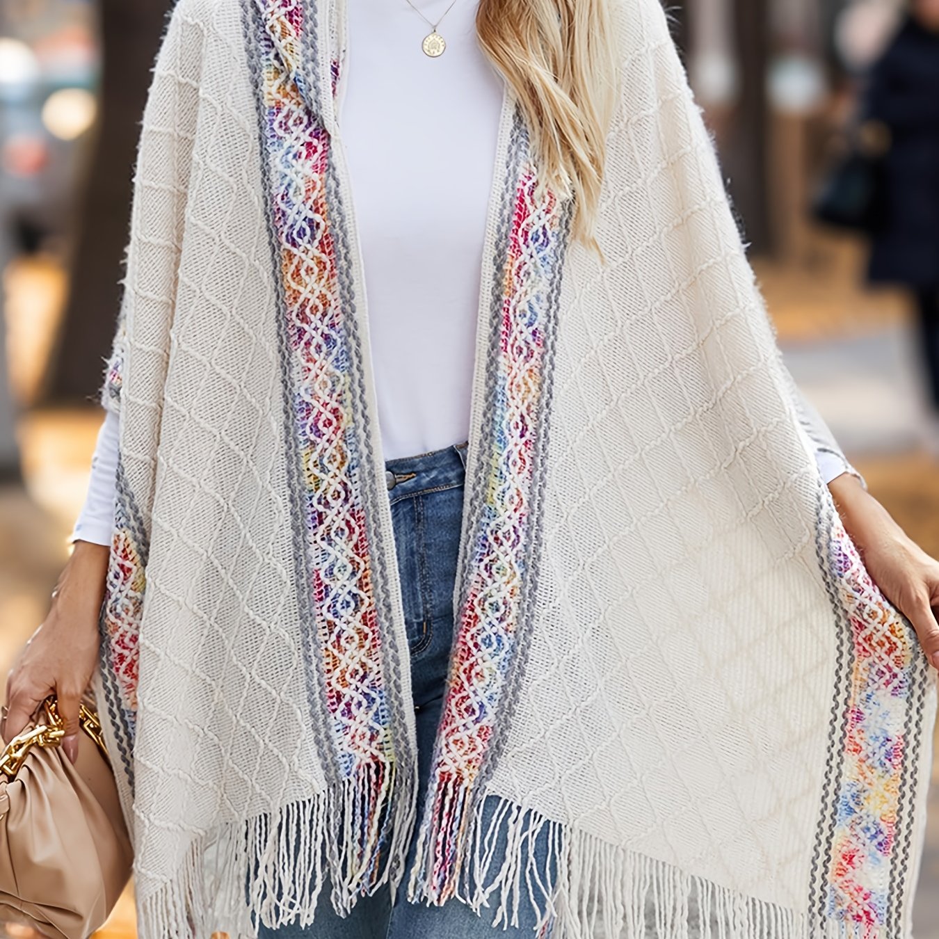 TEMU 2024년 신상 가을/겨울 컬렉션, 태슬 장식 스타일리시 숄, 단색, 활용도 높은 루즈핏 가디건