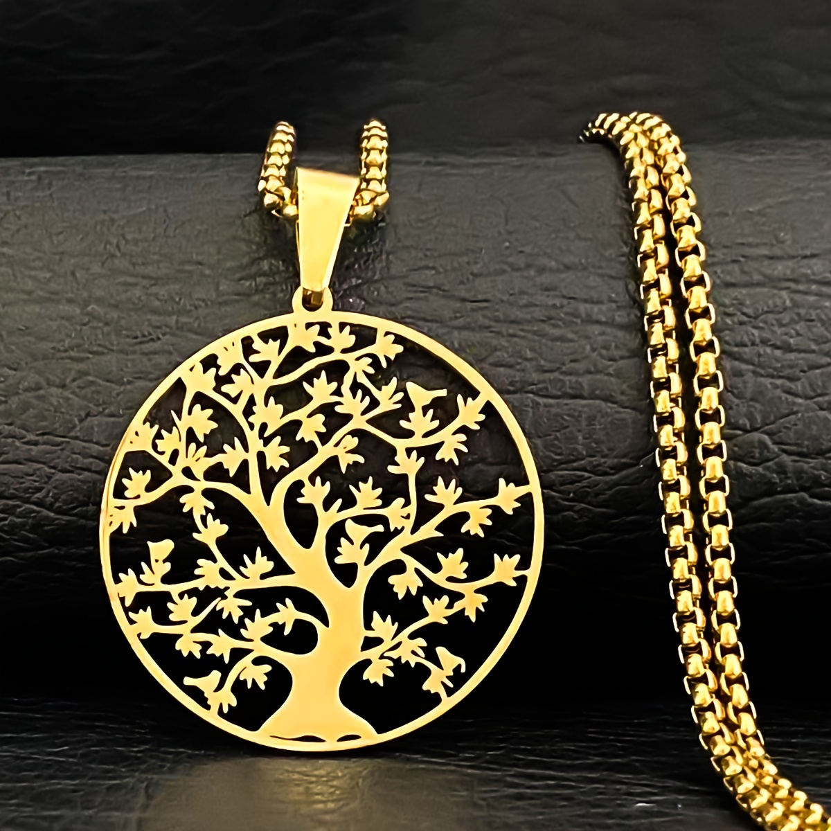 TEMU 여성을 위한 우아한 생명의 나무 스테인리스 스틸 목걸이 - 18K 금도금, 복잡한 잎 디자인, 일상 착용이나 선물용으로 완벽, 일상용 주얼리|우아한 목걸이|세밀한 장인 정신
