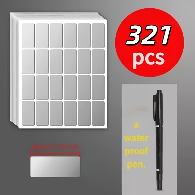 TEMU 320개 스티커 세트 + 펜 1개, 매트 실버 및 오일 방지 스티커, 잔여물 없는 접착 라벨, 강력 접착 스티커, 식품 라벨, 약품 라벨, 문서 라벨에 이상적