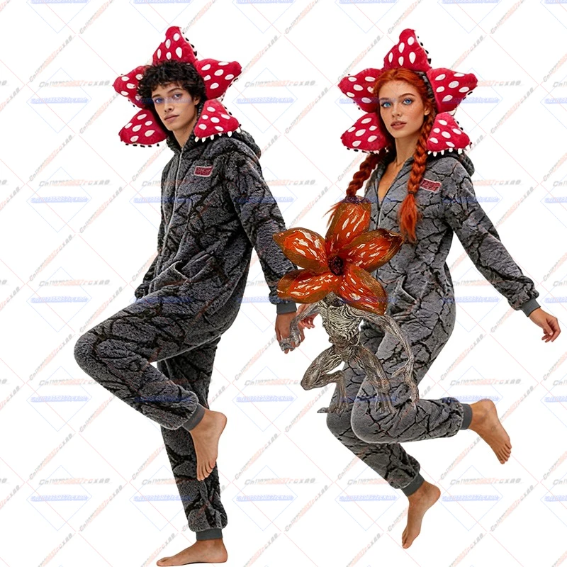 몬스터 씽스 성인용 원지 파자마 데모고르곤 코스튬 후드 포함 원피스 플리스 점프수트 따뜻한 로퍼 잠옷