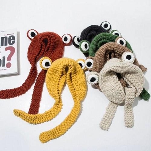 TEMU 귀엽고 따뜻한 귀에 달린 귀여운 개구리 모자. 외출, 파티, 여행에 완벽하며, 통합된 목 따뜻이 기능이 있는 내시방구 보호 모자로 사용할 수 있습니다.