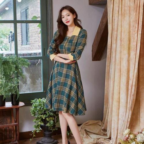 [오너클랜]인기상품 미스개화기 그린 체크 벨트 원피스 레트로 복고의상 [WAD337D_250918]