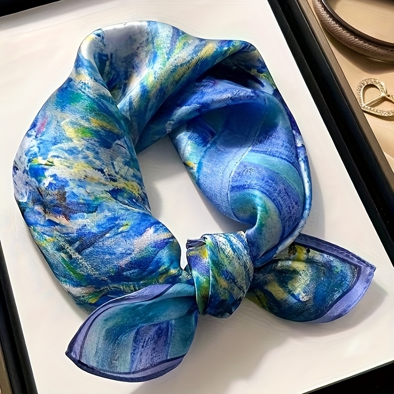 TEMU FANGSIGE 100% 뽕나무 실크 스카프 오일 페인팅 블루 리듬 20.86인치