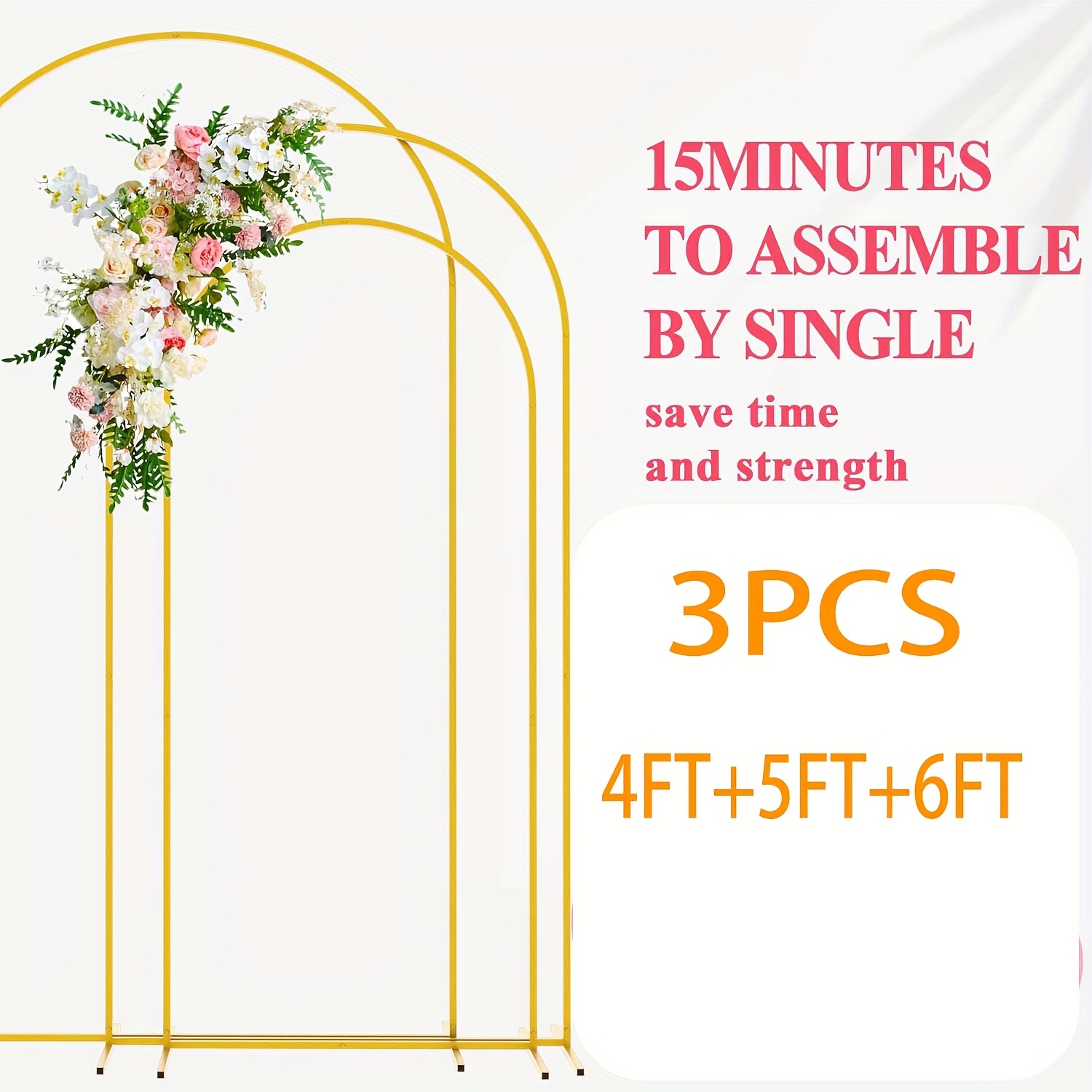 TEMU 3개 금속 아치 백드롭 스탠드, 결혼식, 졸업 시즌, 생일 및 축하 행사용 - 실내/야외 다목적 장식 프레임, 골든 웨딩 아치 스퀘어 아치 프레임, 생일 파티 및 졸업식 장식