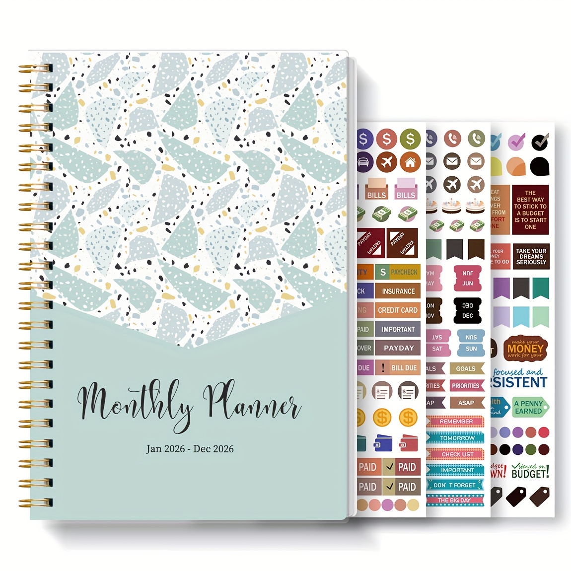 TEMU 1개 A5 2026년 월별 플래너, 1년 스파이럴 정리함 (2026년 1월 ~ 2026년 12월), 학교, 사무실 및 가정용 월별 계획 페이지가 포함된 12개월 액자, 스티커 3개 포함