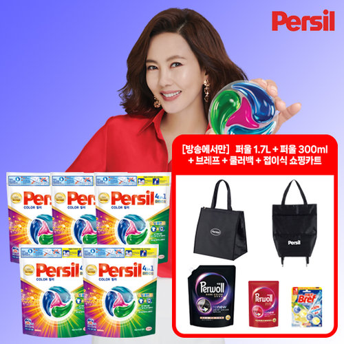 NEW 퍼실 디스크 컬러 5팩+브레프1+퍼울세제1.7L 1팩+퍼울300ml 1팩+쇼핑카트1+쿨러백1