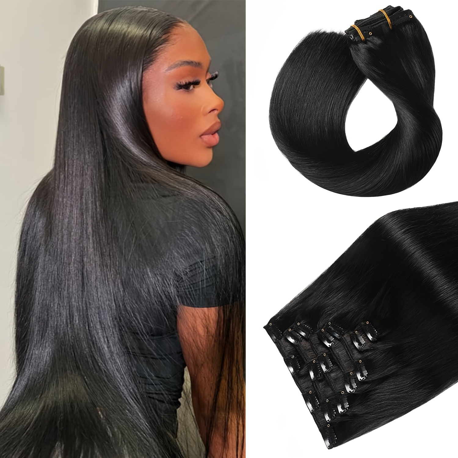 TEMU 클립 인 헤어 익스텐션 140g 자연 블랙 7피스