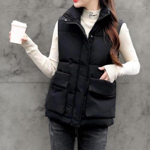 [다잇템] 여성 주머니 청자켓 면혼합 캐쥬얼 검정 베스트