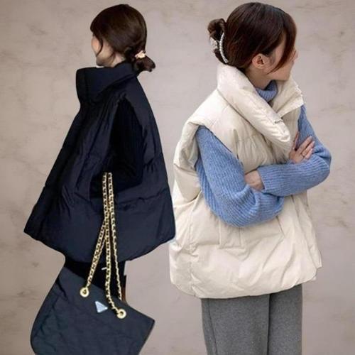 [다잇템][다잇템] 여성 패딩 포근 검정 폴라넥 크림색 조끼_23328806_588872