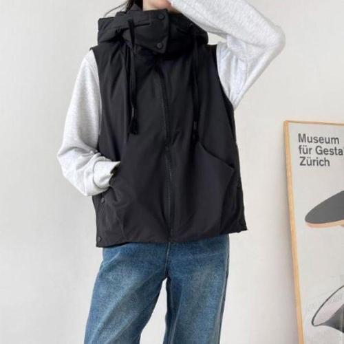 [다잇템][다잇템] 여자 베이직 검정 후디 슬리브리스 드로우코드 패딩 조끼_23435899_588872