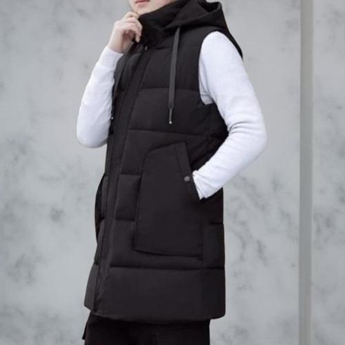 [다잇템][다잇템] 여성 후디 검정 패딩 슬리브리스 베이직 드로우코드 조끼_23741512_588872