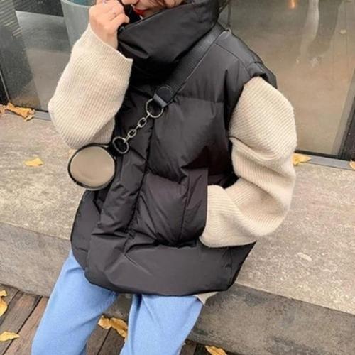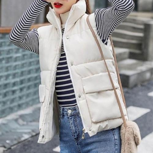 [다잇템][다잇템] 여성용 미색 패딩 검정 주머니 폴라넥 조끼_23328807_588872