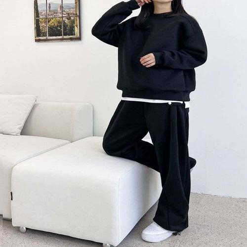 [셀럽하우스]여자 YHUG6185 겨울 양털 맨투맨 스냅 와이드핏 기모팬츠 세트