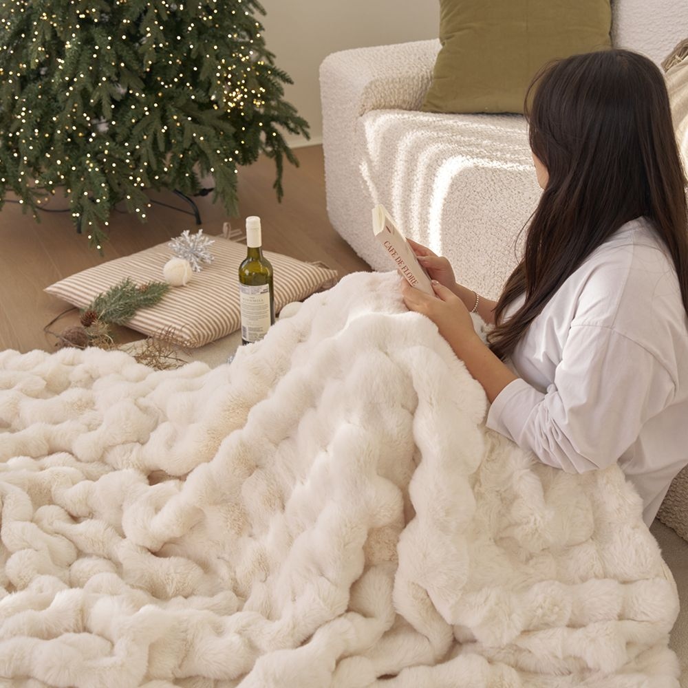 프랑브아즈 겨울 밍크 블랭킷 담요 이불 아이보리 JS