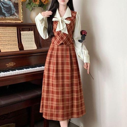 [에이치플러스몰]그린체크 복고풍원피스 경성 경성드레스 화이트